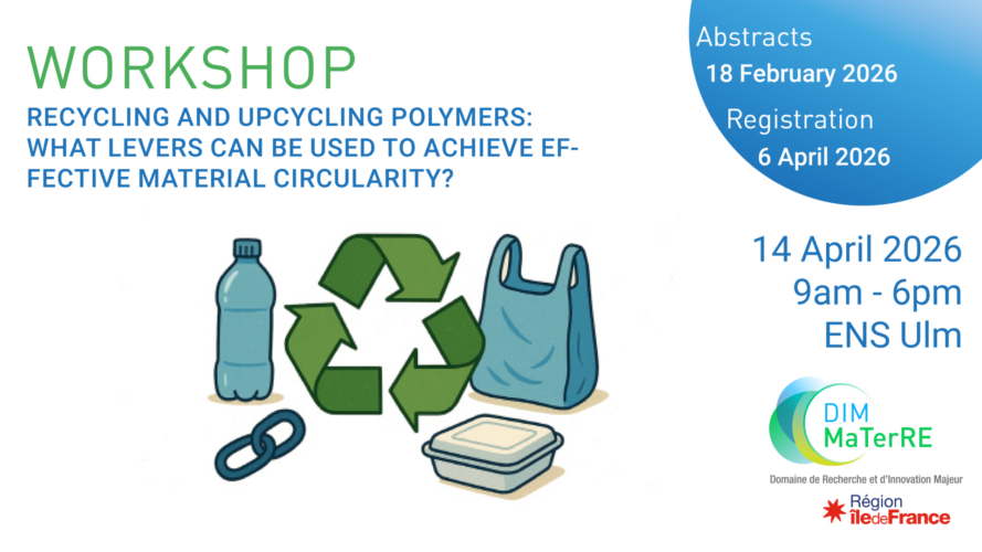 Le workshop Recyclage et upcycling des polymères se tiendra le 14 avril 2026 à l’ENS Ulm. Les abstracts sont à déposer avant le 9 février.